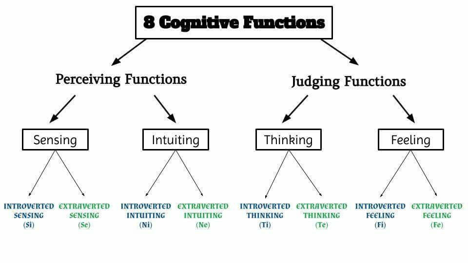 ➜ there's a total of eight cognitive functions, which will determine how your brain perceives and judges information.➜ there are four extraverted functions and four introverted functions, as well as four perceiving and four judging functions.